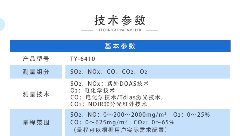SO2、NOx紫外DOAS技術;O2電化學技術;CO電化學技術/Tdlas激光技術;CO2NDIR非分光紅外技術