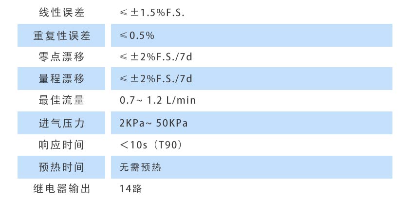 SO2、NO:0~200~2000mg/m3;O2:0~25%;CO:0~625mg/m3;CO2:0~65%(量程可以根據用戶實際需求配置)