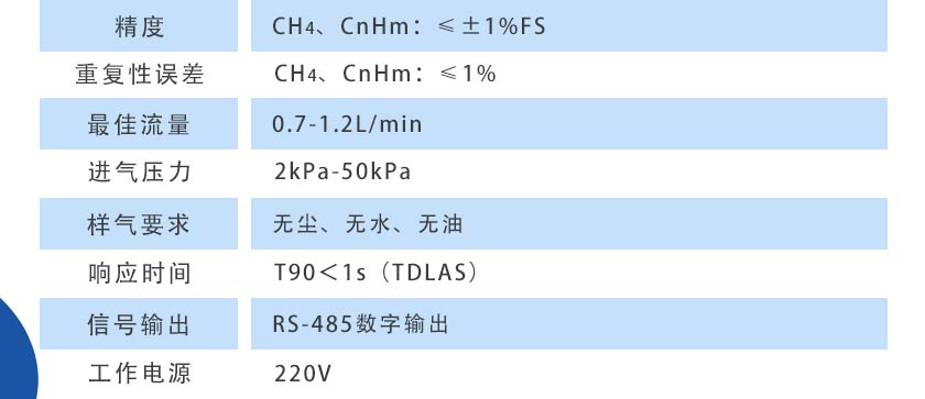 CH4、CnHm:≤±1%FS