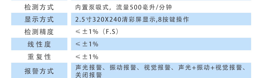CO(0~1000ppm)、H2S(0~100ppm)、O2(0~30%Vol)、Ex(0~100%LEL)、CO2(0~5000ppm)、NOX(0~1000ppm),其他量程可訂制 |
