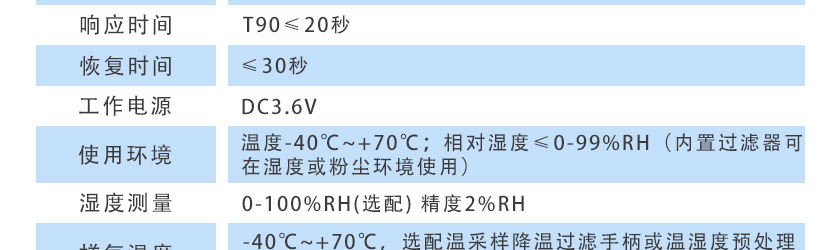 1.2m可伸縮采樣手柄(標準長度1米)、溫濕度測量功能、外置微型無線藍牙打印機、高溫采樣降溫過濾手柄、高溫高濕預處理系統、濕度粉塵過濾器多個、SD卡存儲、無線數據通訊 |