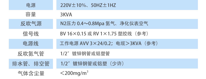 N2壓力 0.4~0.8Mpa氮氣、凈化儀表空氣