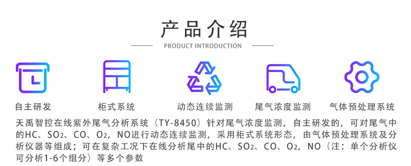 • 在線紫外尾氣分析儀 TY-6450 針對國內外環保在線監測分析自主研發的氣體分析產品,該分析儀基于紫外差分吸收光譜技術(DOAS)、NDIR非分光紅外技術和電化學技術,能夠測量HC、SO2、NO、NO2、CO、CO2、O2等氣體濃度。
