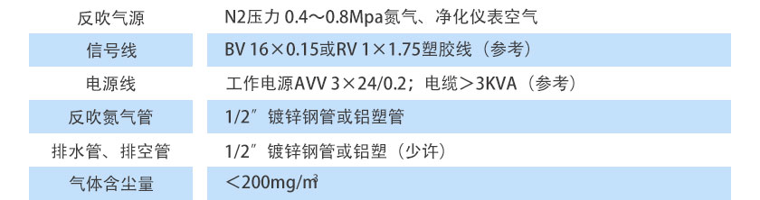 N2壓力 0.4~0.8Mpa氮氣、凈化儀表空氣