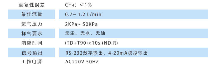 (6)重復(fù)性誤差:CH4:≤1%