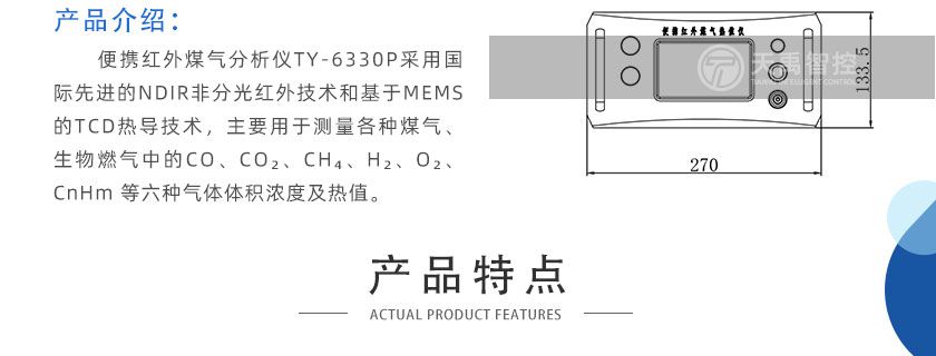 • 便攜紅外氣體分析儀 TY-6300P 采用自主知識產權的NDIR非分光紅外技術,主要用于測量氣體中的CO、CO2、CH4、C3H8、SO2、NO等氣體的體積濃度及熱值。全進口傳感器、測量精度高、結構簡單、維護方便,軟件功能強大,可拓展性強、現場實用性好,目前暢銷國內外。