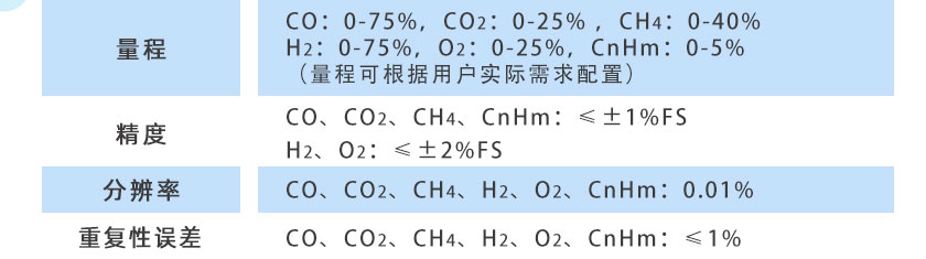 CO/CO2/H2/O2/CH4:0-100%;CnHm:0-10%; O2:0-25%