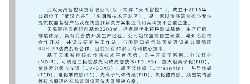 • 在線煤氣分析系統 TY-8300 TY-8300型煤氣在線分析系統是天禹智控自主研發新型在線監測系統,該產品基于非分光紅外(NDIR)氣體分析技術、長壽命電化學傳感技術以及基于MEMS的熱導技術,可同時在線測量煤氣的熱值,以及CO、CO2、CH4、H2、O2、CnHm等氣體的體積濃度。預處理系統采用冷干法設計,關鍵部件采用原裝進口,可根據現場不同的工況條件,為客戶定制解決方案,保證分析系統的可靠運行。