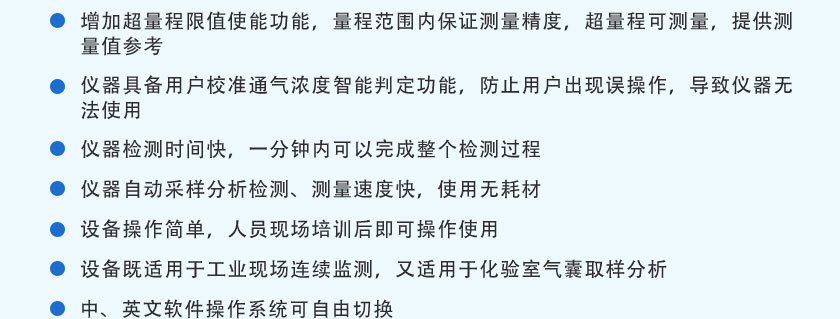 采用自主知識產(chǎn)權(quán)的NDIR非分光紅外技術(shù),主要用于測量氣體中的CO、CO2、CH4、C3H8、SO2、NO等氣體的體積濃度及熱值。全進(jìn)口傳感器、測量精度高、結(jié)構(gòu)簡單、維護(hù)方便,軟件功能強(qiáng)大,可拓展性強(qiáng)、現(xiàn)場實(shí)用性好,目前暢銷國內(nèi)外。
