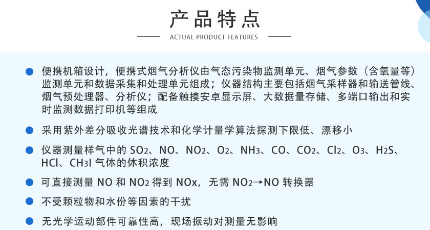 由氣態(tài)污染物監(jiān)測單元、煙氣參數(shù)(含氧量等)監(jiān)測單元和數(shù)據(jù)采集和處理單元組成;儀器結(jié)構(gòu)主要包括煙氣采樣器和輸送管線、煙氣預(yù)處理器、分析儀;配備觸摸安卓顯示屏、大數(shù)據(jù)量存儲、多端口輸出和實(shí)時監(jiān)測數(shù)據(jù)打印機(jī)等組成。