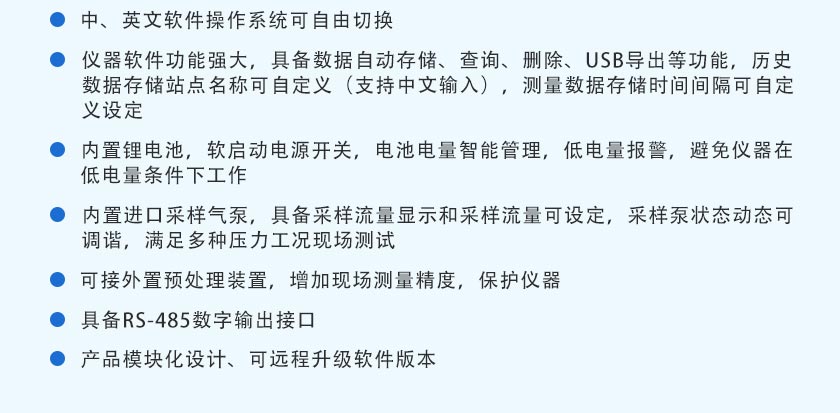 SO2、NOx:紫外DOAS技術(shù);O2:電化學(xué)技術(shù);CO:電化學(xué)技術(shù)/Tdlas激光技術(shù);CO2:NDIR非分光紅外技術(shù) |