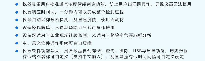 (11)設備既適用于工業現場連續監測,又適用于化驗室氣囊取樣分析。